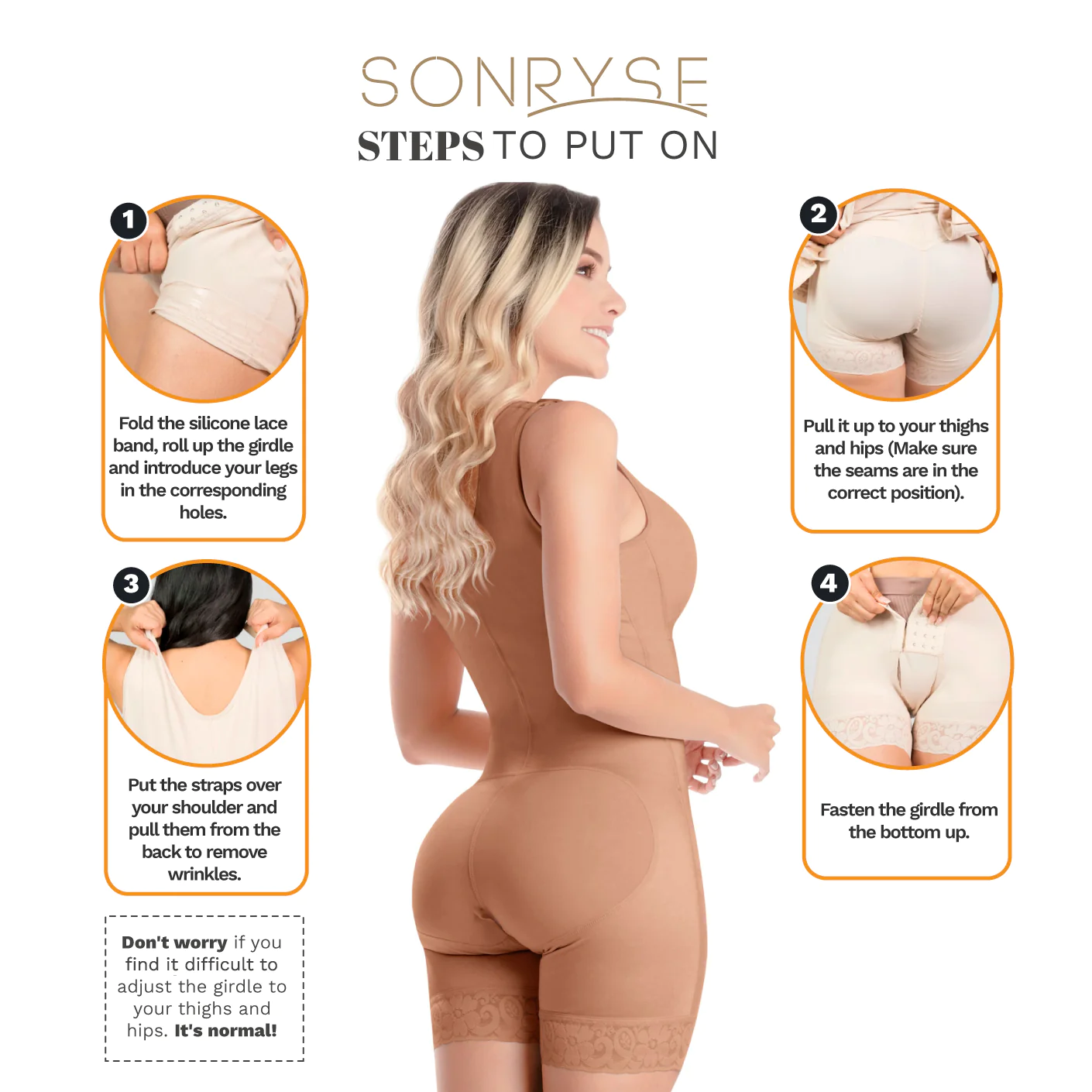 Mid-thigh design with silicone bands so you can wear your normal clothes with confidence after surgery.