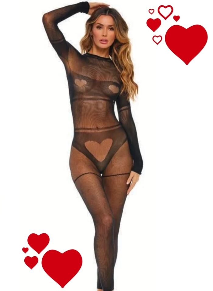 Whether worn alone or layered, it delivers a captivating look that’s both playful and alluring. Let this heart-detailed bodysuit become your new favorite statement piece.