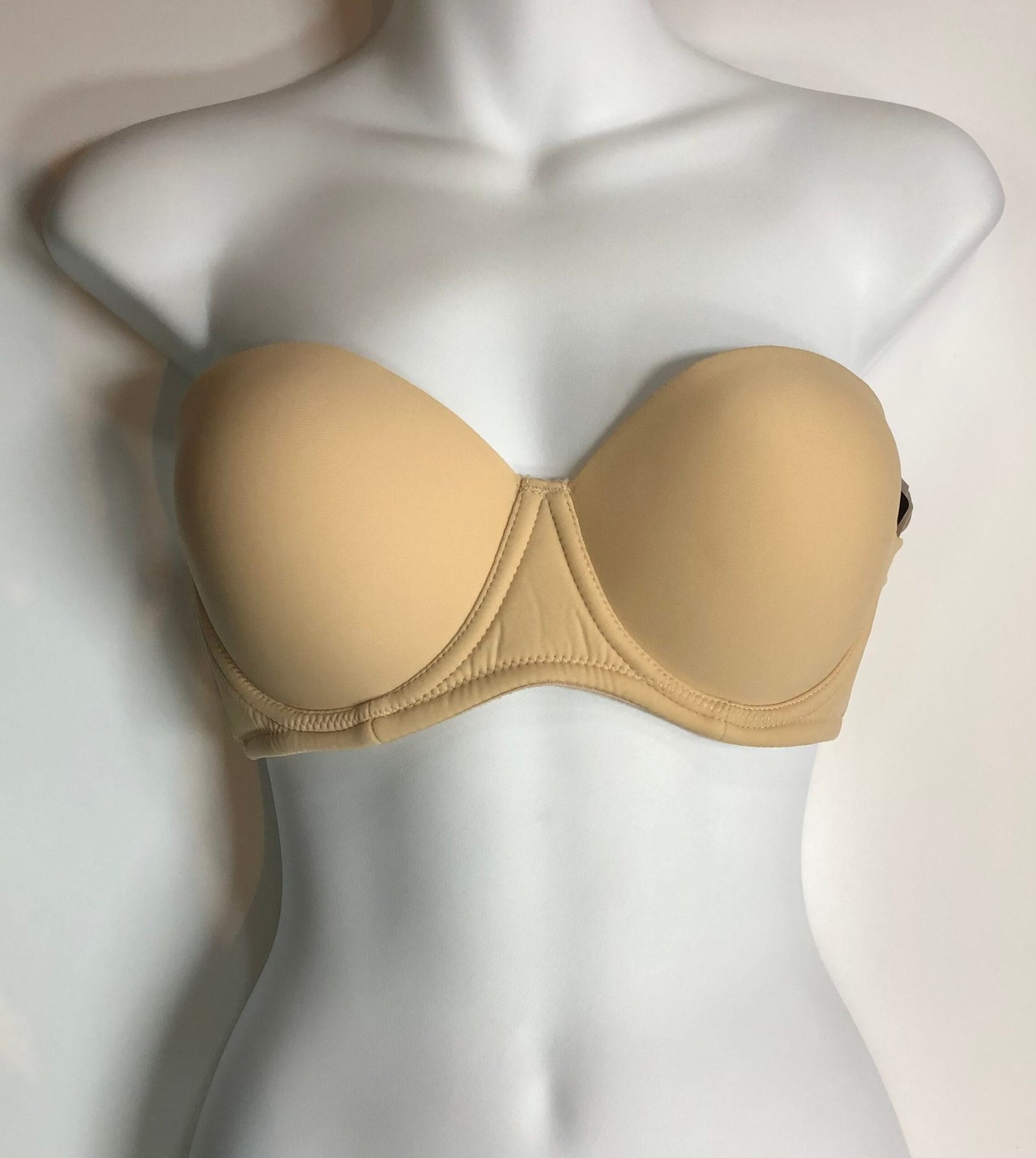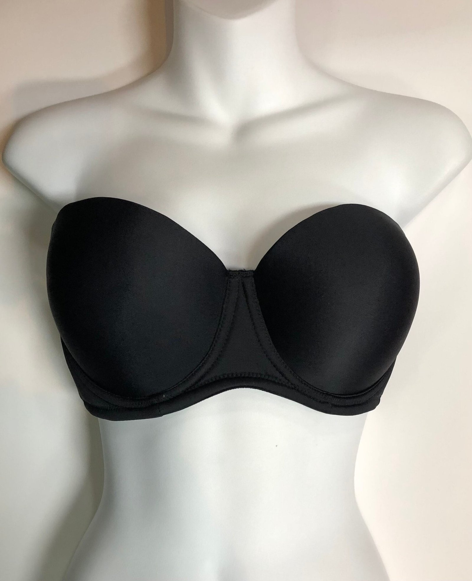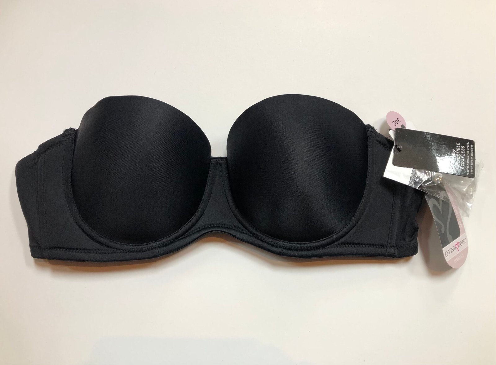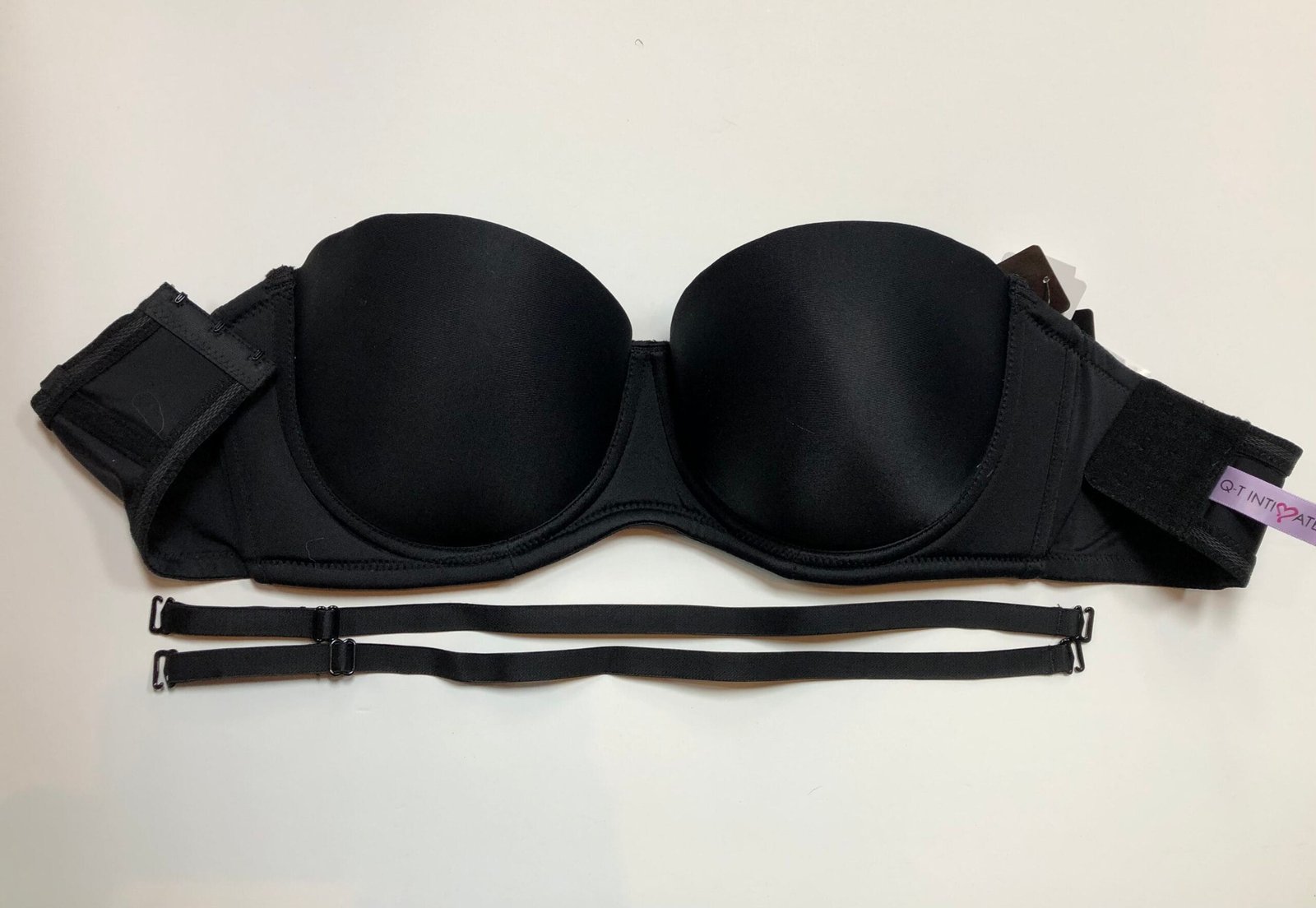 This bra offers wearing options such as strapless, halter style, criss-cross, one shoulder, or classic look. Underwire cups are lightly padded for a smooth, rounded shape. Grip elastic on the sides and back keeps the bra in place. Smooth sides with boning. Foam padding along frame for added comfort. Comes with clear and self-color straps. Many hook and eye adjustments for comfort wear at any time. Small bump at bottom of cup for slight lift